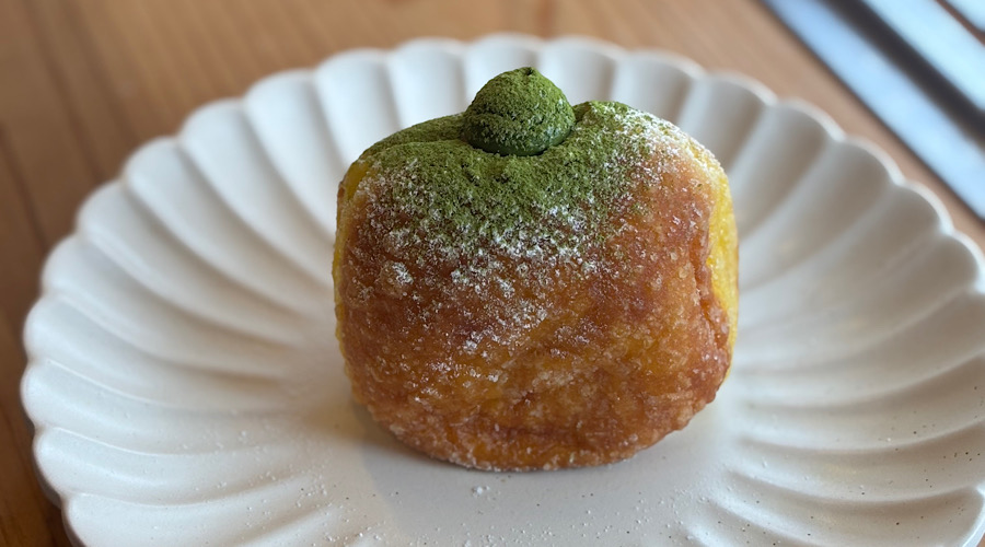 かぼちゃ生地を練り込んだふんわりもちっとした生地に